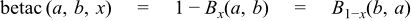 Returns the normalised complement of the incomplete beta function of a, b and x: