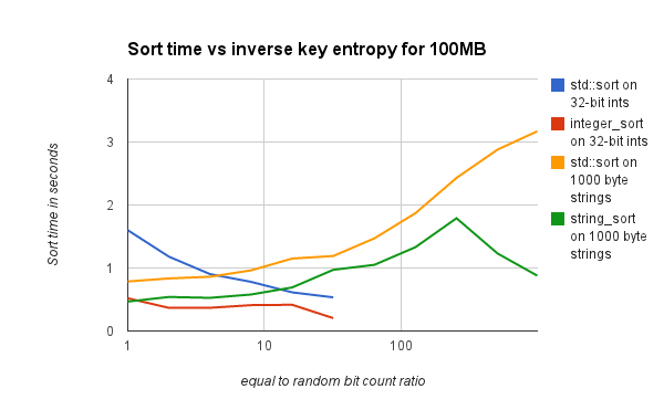 Direct performance comparisons on a newer x86 system running Ubuntu, with the fallback to std::sort at lower input sizes disabled are below.